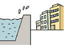 満潮時の平均的な海面の高さよりも低い土地には注意。堤防が決壊すると大被害を受ける恐れがあります。