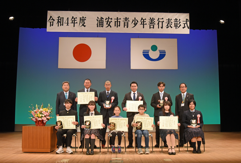 青少年善行表彰は、人命救助や地域貢献活動などの善い行いをした青少年の個人または団体を表彰するものです。今年度は個人の部で4人、団体の部で4団体の皆さんが受賞しました。